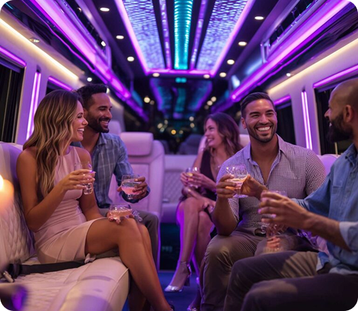 Coordinating multiple vehicles or relying on rideshares can derail your night. Our night out transportation services keep everyone together, on time, and enjoying every venue on the schedule. No more waiting for cars or tracking down friends, just streamlined group fun.
