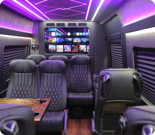 Our commitment to providing unparalleled experiences begins with our selection of vehicles. From Mercedes Sprinter Vans to limo buses, each ride in our fleet exudes elegance and sophistication. Whether you’re planning a night out with friends, attending a special event, or exploring the city’s sights, our vehicles offer both comfort and style.